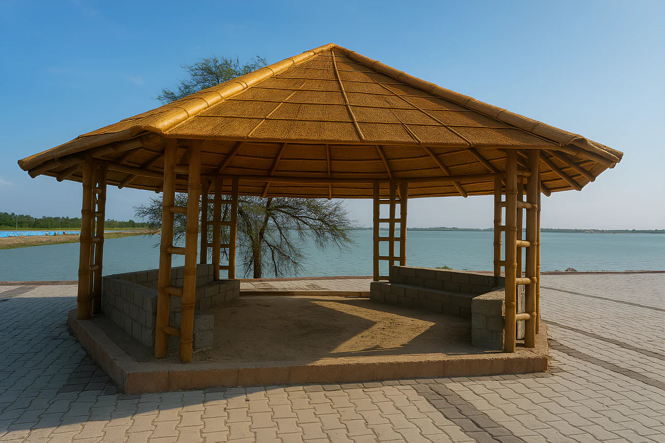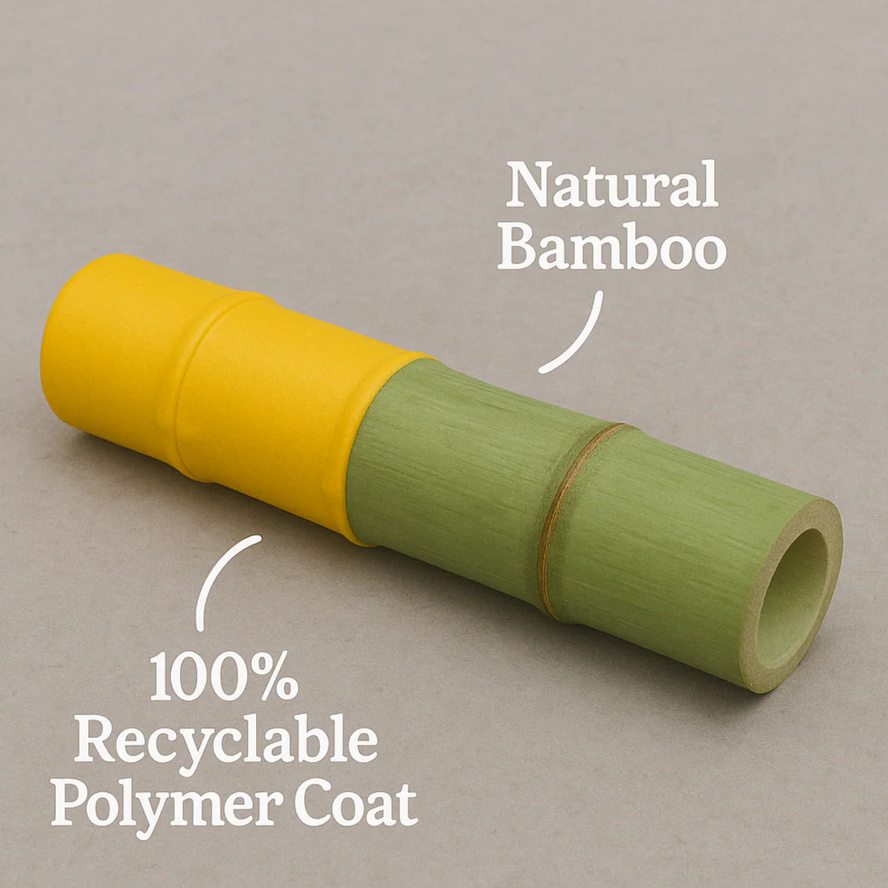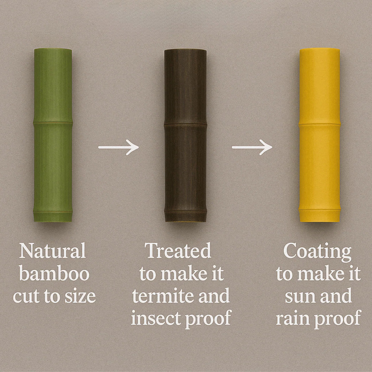 An engineered product made by bamboo treated with naturally derived chemicals and coated with a specialised polymer to enhance life, strength, durability, and versatility in architecture, infrastructure, and corporate use.