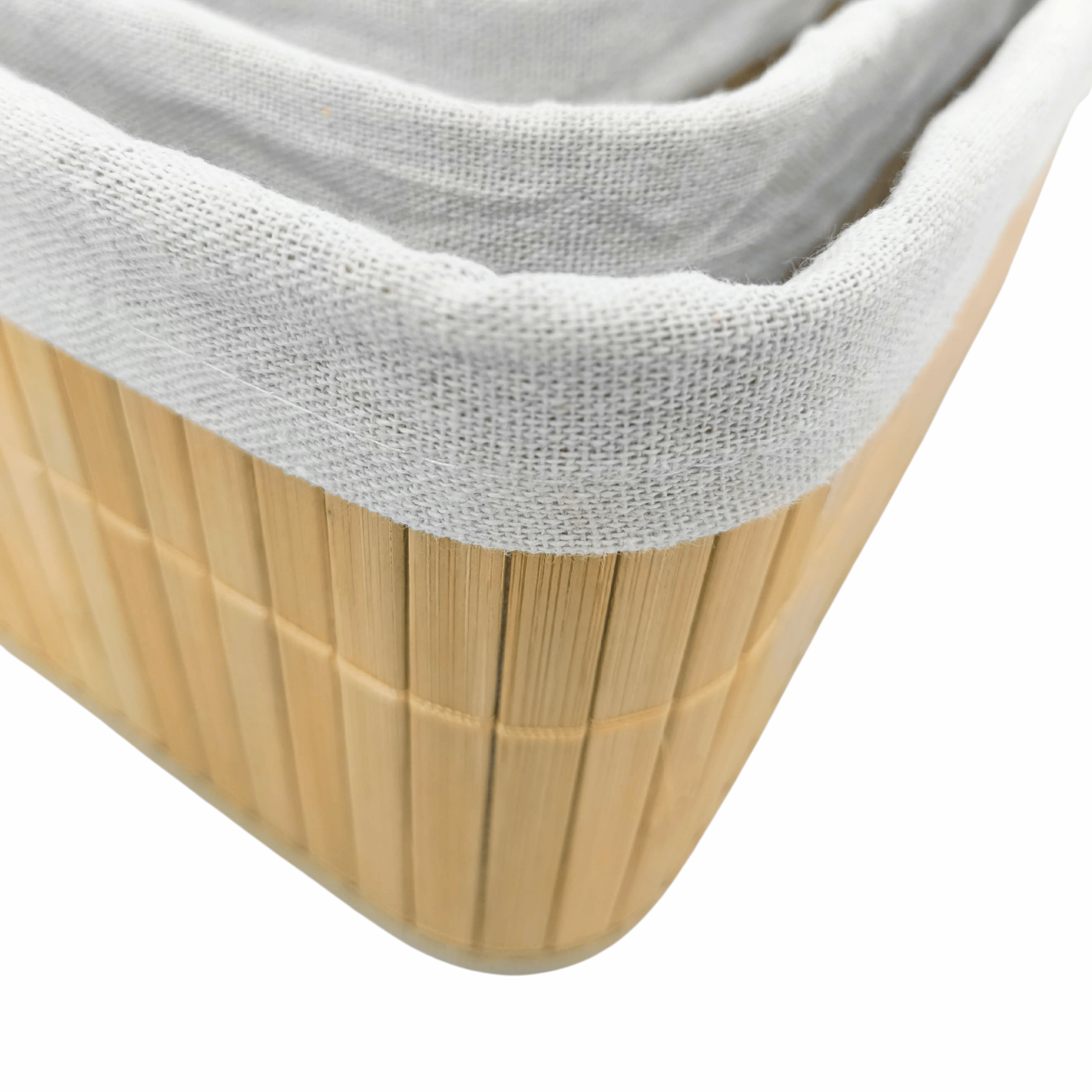 3-Piece Multi Size Bamboo Storage Basket Set (Square) – Natural Organizer with Washable Cloth Lining (Stackable & Nestable)