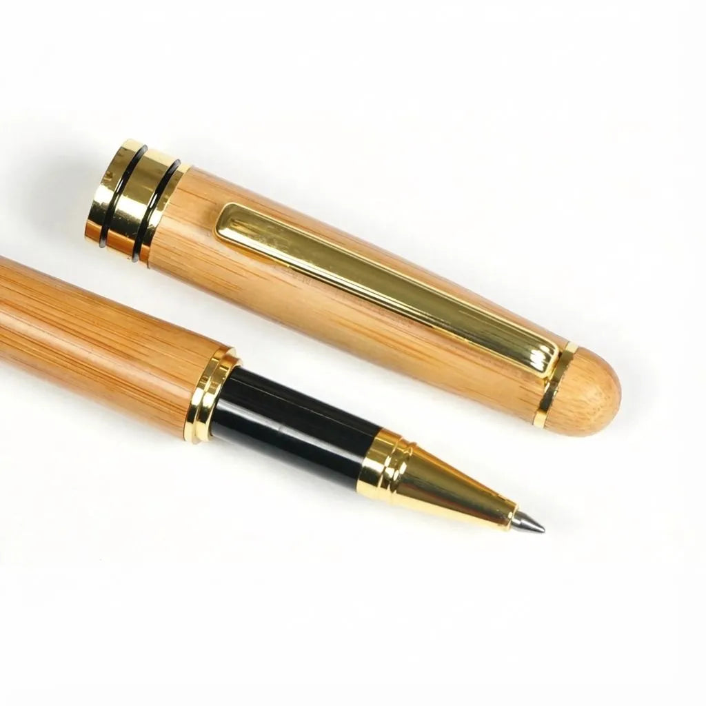 ✅ Body Material: Natural bamboo ✅ Type: Roller pen (smooth ink flow) ✅ Finish: Bamboo grain with gold-tone accents ✅ Grip: Balanced, comfortable hold for daily writing ✅ Use: Office, study, meetings, journaling, gifting