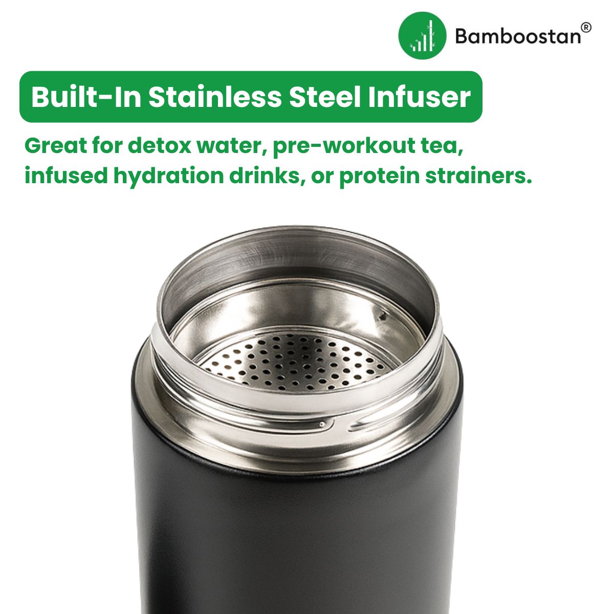 • Built-In Stainless-Steel Infuser: Perfect for detox water, infused hydration, pre-workout tea, or as a protein filter.