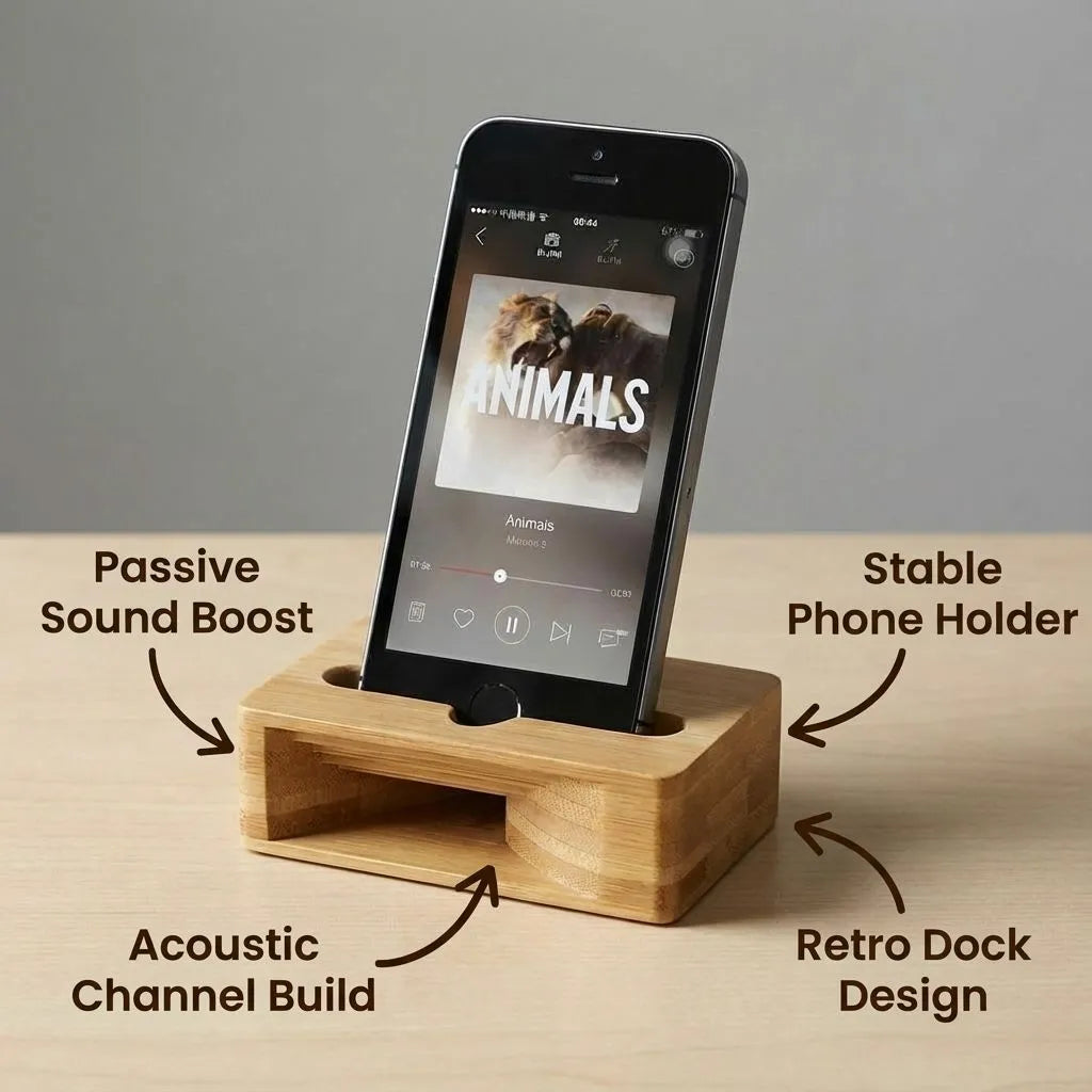 ✅ Passive Sound Boost: Amplifies your phone’s speaker naturally for louder, clearer audio. ✅ Retro Dock Design: A minimal, vintage-inspired stand that looks great anywhere. ✅ Stable Phone Holder: Holds your device at a comfortable viewing angle for hands-free use. ✅ Acoustic Channel Build: Built-in sound path directs audio forward instead of spreading sideways. ✅ No Charging Needed: Works anywhere without cables, batteries, or setup.